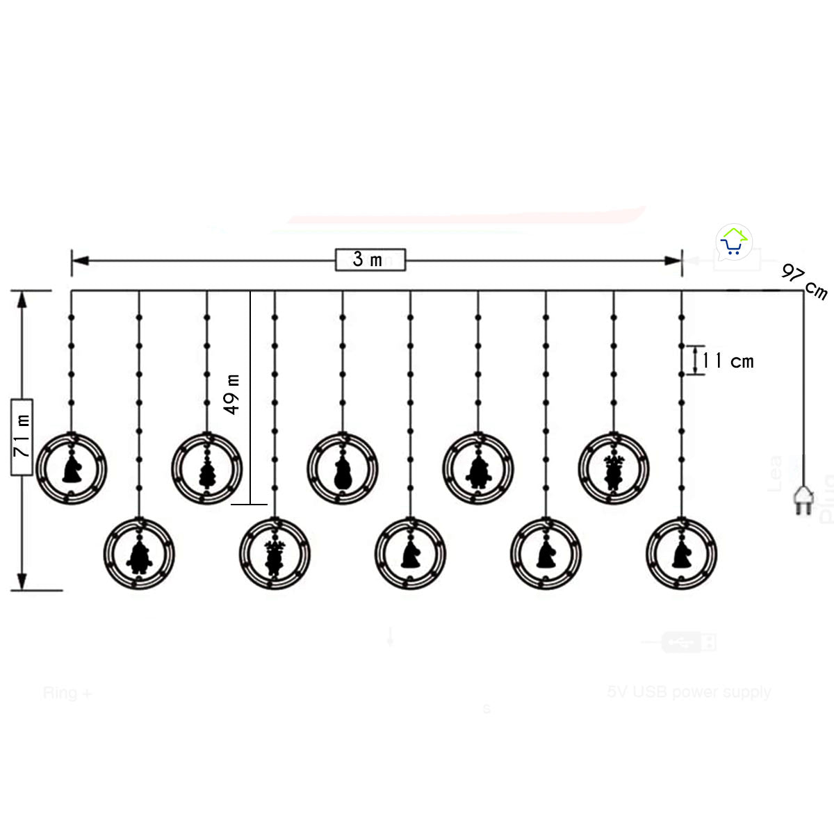 Dimensiones: 3 metros largo x 67.5 cm caída | 150 luces LED | Empaque: 16x16x16 cm