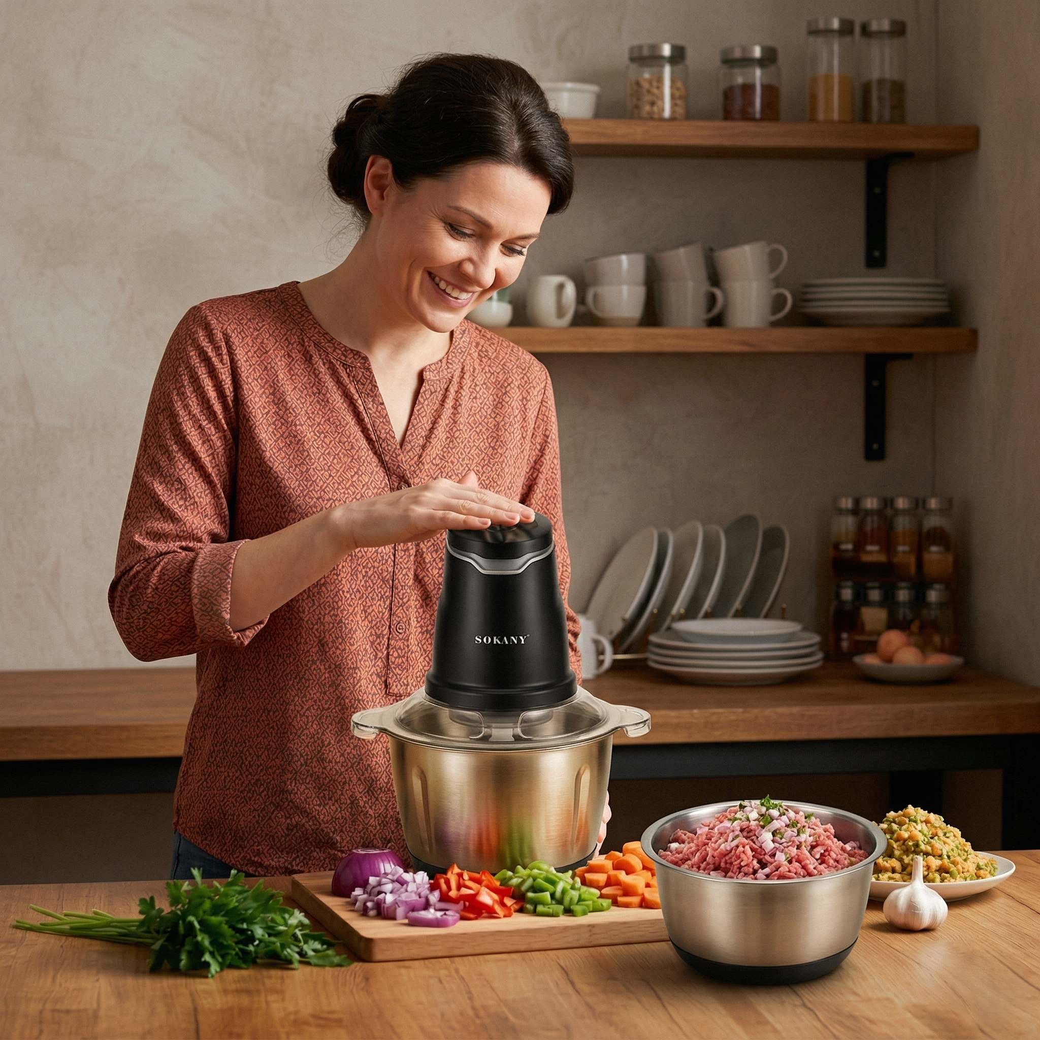 ⚡ Multifuncional y Poderoso: No solo pica carnes y vegetales, también procesa granos y prepara salsas cremosas en segundos. Un aliado completo para tu cocina que te facilita la vida.